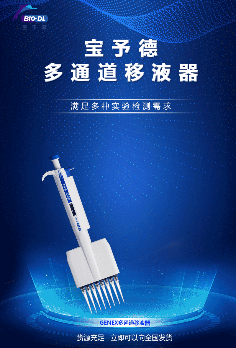寶予德Genex/Adonis/Colour系列移液器,不僅有8通道,還有12通道移液器,量程覆蓋新冠檢測常用的0.5-10μl5-50μl,更有100-1000μl大量程8通道移液器。采用進口材料,輕松的按壓力+精準的移液性能,能夠滿足多種實驗檢測需求。目前貨源充足,可以立即向全國發(fā)貨。