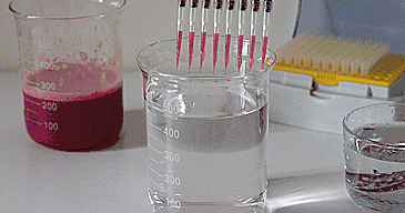用多道移液器吸取西瓜汁,打入氯化鈣溶液中,靜置1min。