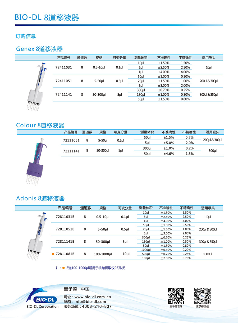 Adnios 100-1000μl 8道核酸提取專用移液器